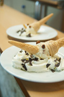 Verschiedene Sorten Eis. Kugel € 1,00.
